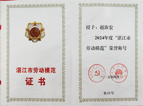 祝賀!我司趙汝宏同志榮獲“湛江市勞動模范”稱號